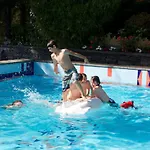 Gli ospiti della struttura possono rilassarsi in una piscina o praticare tennis sull'erba, ping pong e un biliardo.
